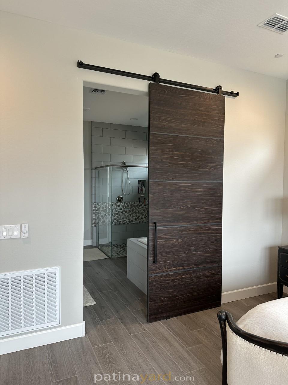 Our barn door tracks, handles and hardware are made by Patina Yard and if we need to purchase hardware due to style or design, we only purchase from outside vendors that supply high quality hardware. A lot of other hardware on the market has pre-determined holes for mounting which often times will not layout right as the holes do not line up and they are not custom. Call us for your next barn door project!